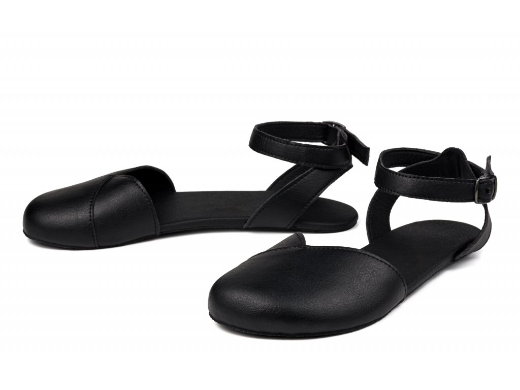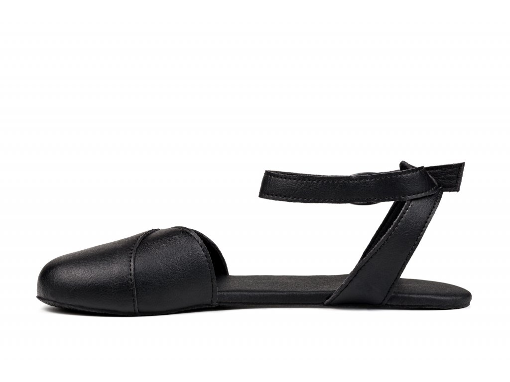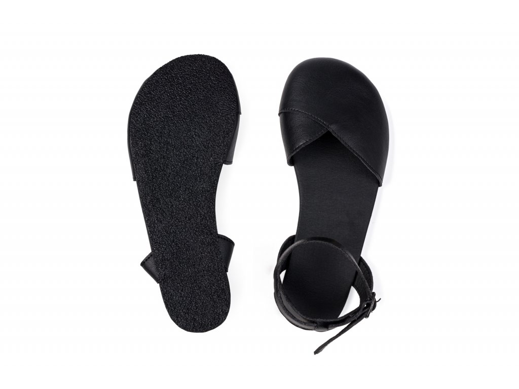 Černá barefootové sandálky s černou podšívkou z luxusní alternativy kůže CF+ (Cruelty free). Tento materiál převyšuje svými vlastnostmi kůži a je od ní k nerozeznání. Jeho výroba není spojena s utrpením zvířat. Je voděodolný, prodyšný a se skvělou odolností proti otěru. Podšívka je černá z prodyšné síťoviny AirNet®. Tloušťka podrážky je 2 mm + 6 mm měkká vrstva