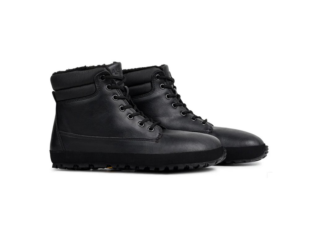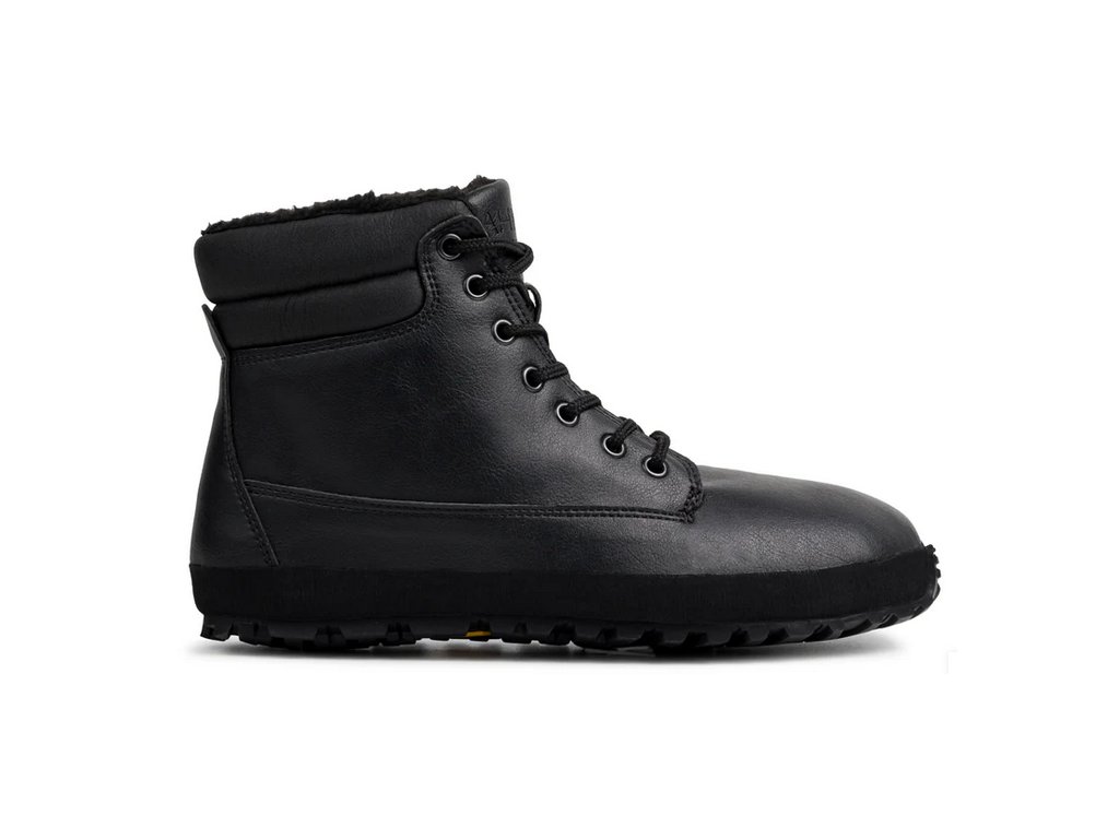 Černá barefootová bota z luxusní alternativy kůže CF+ (Cruelty free). Tento materiál převyšuje svými vlastnostmi kůži a je od ní k nerozeznání. Podšívka veganský kožíšek (polyester) + membrána.