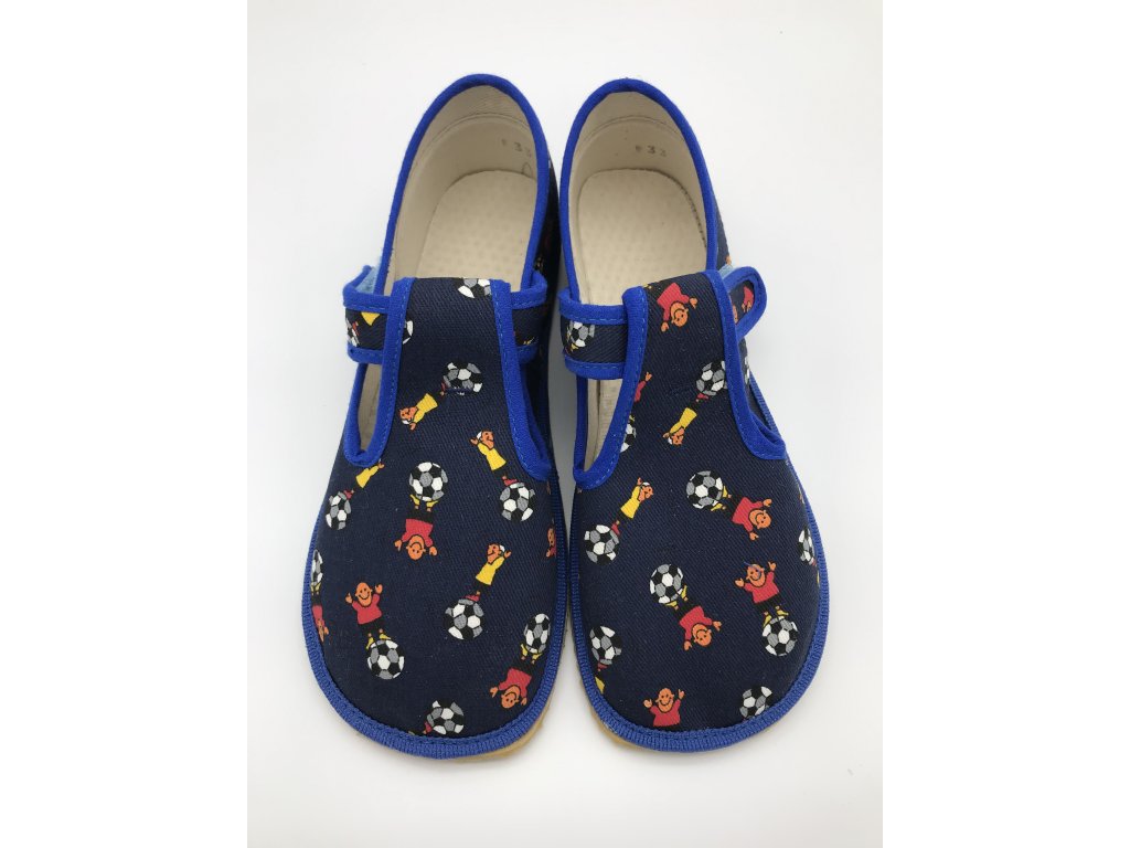 Beda zdravé flexibilní barefoot bačkůrky, UŽŠÍ BF-060010/W/02 - Modrý fotbal
