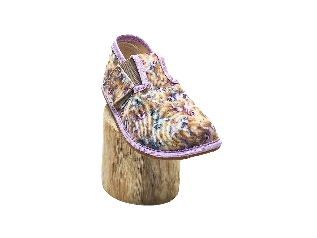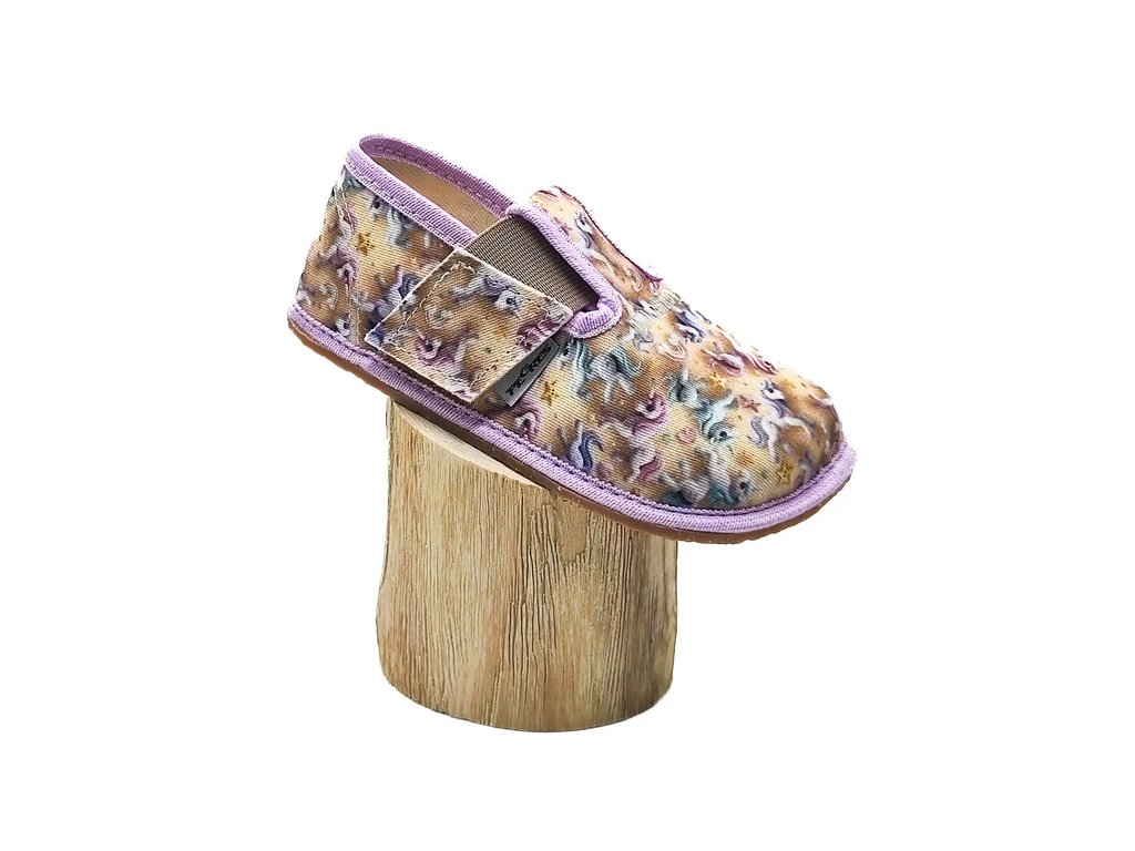 Barefoot Pegres se pyšní velkým prostorem pro dětské prstíky. Vhodné na dominantní palečky. Papučky jsou ušity z vybraných látek. Jsou velmi měkké a mimořádně ohebné. Díky všem těmto vlastnostem se v nich děti cítí svobodně a bez omezení.